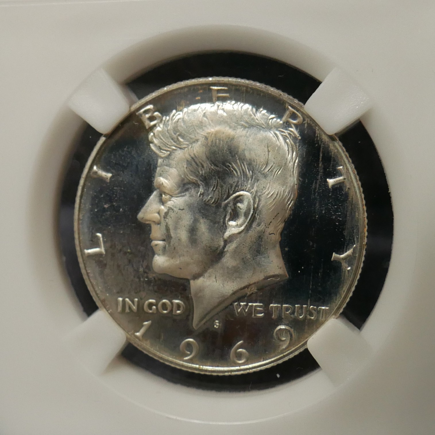 A 1969‑S Proof Kennedy half dollar is a 40% silver, San Francisco–minted proof coin known for its sharp strike, mirrored fields, and cameo contrast. It’s a popular collectible because it was produced only as a proof issue in 1969, with a relatively high mintage but strong demand among Kennedy series collectors.